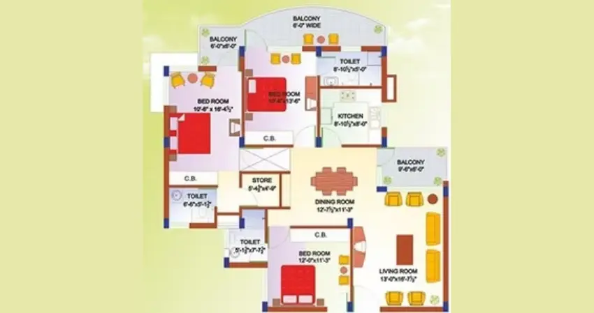 | Floor Type | Super Area (Sq. Ft.) | Carpet Area (Sq. Ft.) | Balcony Area (Sq. Ft.) | Approx. Pricing (INR) |