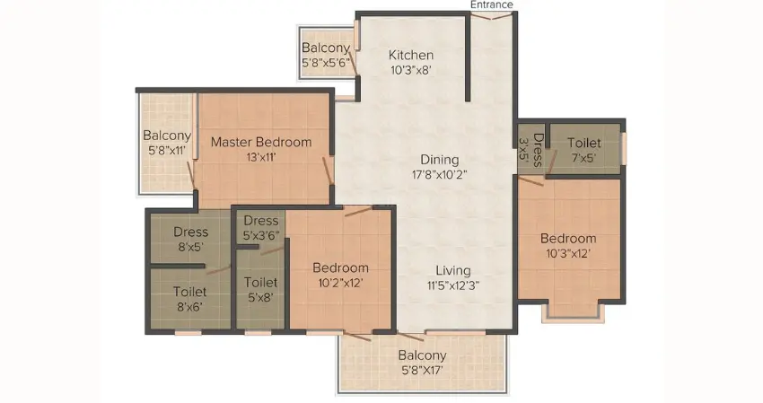 The project adheres strictly to Vastu principles, with east-facing entrances for prosperity and south-west master bedrooms for stability. Balconies are positioned to maximize natural light, promoting harmony – a hallmark of high-rise buildings in Zirakpur that value traditional wisdom in modern setups.