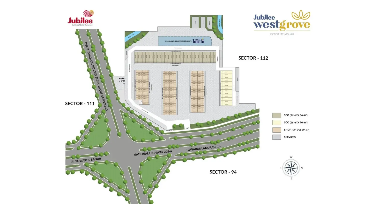 Jubilee Westgrove stands out among real estate projects in Mohali as a dynamic mixed-use development in Sector 112, perfect for those eyeing mohali commercial projects or residential property in Mohali. Developed by Jubilee Group, a trusted real estate company in Mohali with over a decade of experience, this ongoing project features SCO (Showroom Cum Office) plots, DSS (Double Storey Shop) plots, and modern co-living apartments inspired by Twinto. Situated on the bustling Kharar-Landran highway (NH 205-A), it offers excellent visibility and access, making it a hotspot for businesses and residents alike. With GMADA approvals in place, it's designed for sustainable growth, catering to the rising demand for upcoming housing projects in Mohali and luxury residential projects in Mohali. The project emphasizes community living with green spaces, appealing to young professionals and families in this safe, vibrant area near educational hubs.