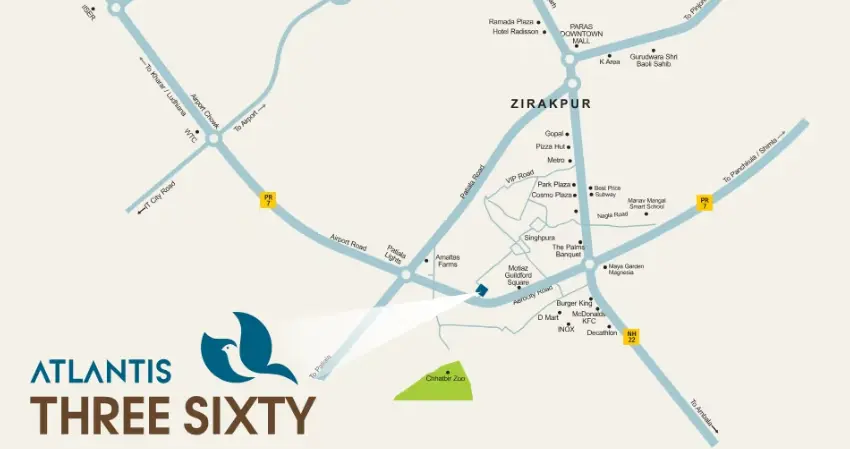 Krishna Atlantis Three Sixty is a standout among Zirakpur real estate projects, developed by Krishna Atlantis Developers, a trusted name in real estate companies in Zirakpur. Nestled on PR-7 Airport Road near Baltana, this high-rise buildings in Zirakpur project spans about 5 acres and promises a blend of modern luxury and serene living. As one of the top residential projects in Zirakpur, it caters to families seeking high-rise flats in Zirakpur with easy access to key highways like Chandigarh-Ambala and Zirakpur-Panchkula. With RERA number PBRERA-SAS79-PR1159, it's a secure choice for upcoming residential projects in Punjab or Chandigarh. The design emphasizes open spaces, making it a highlight in commercial projects in Zirakpur and residential plots in Zirakpur scenes, though it's purely residential. If you're wondering "Is Zirakpur safe to live," projects like this with 24/7 security add peace of mind.
