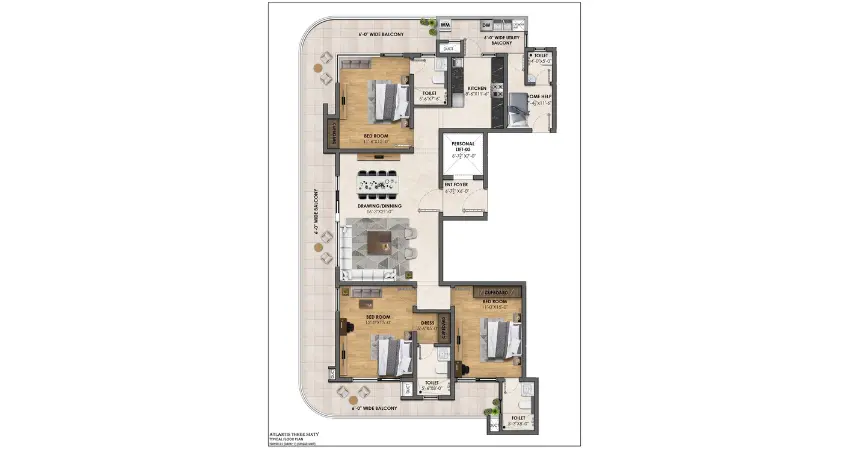 | Floor Type | Super Area (Sq. Ft.) | Carpet Area (Sq. Ft.) | Balcony Area (Sq. Ft.) | Approx. Pricing (INR) |