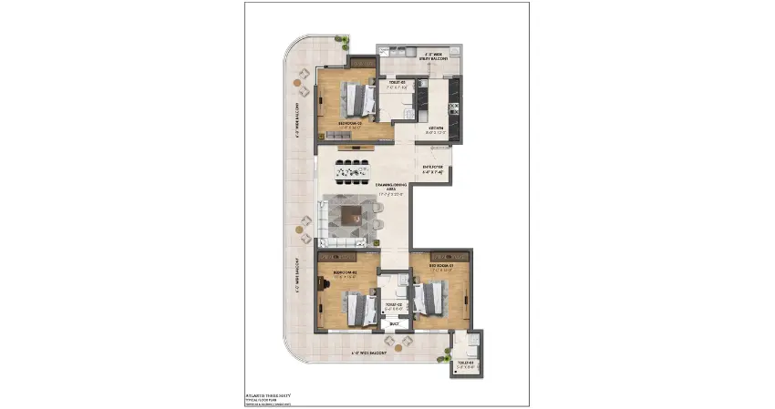 | 3 BHK | 2325 | Approx. 1700 | Approx. 200 | 1.55 - 1.88 Cr |