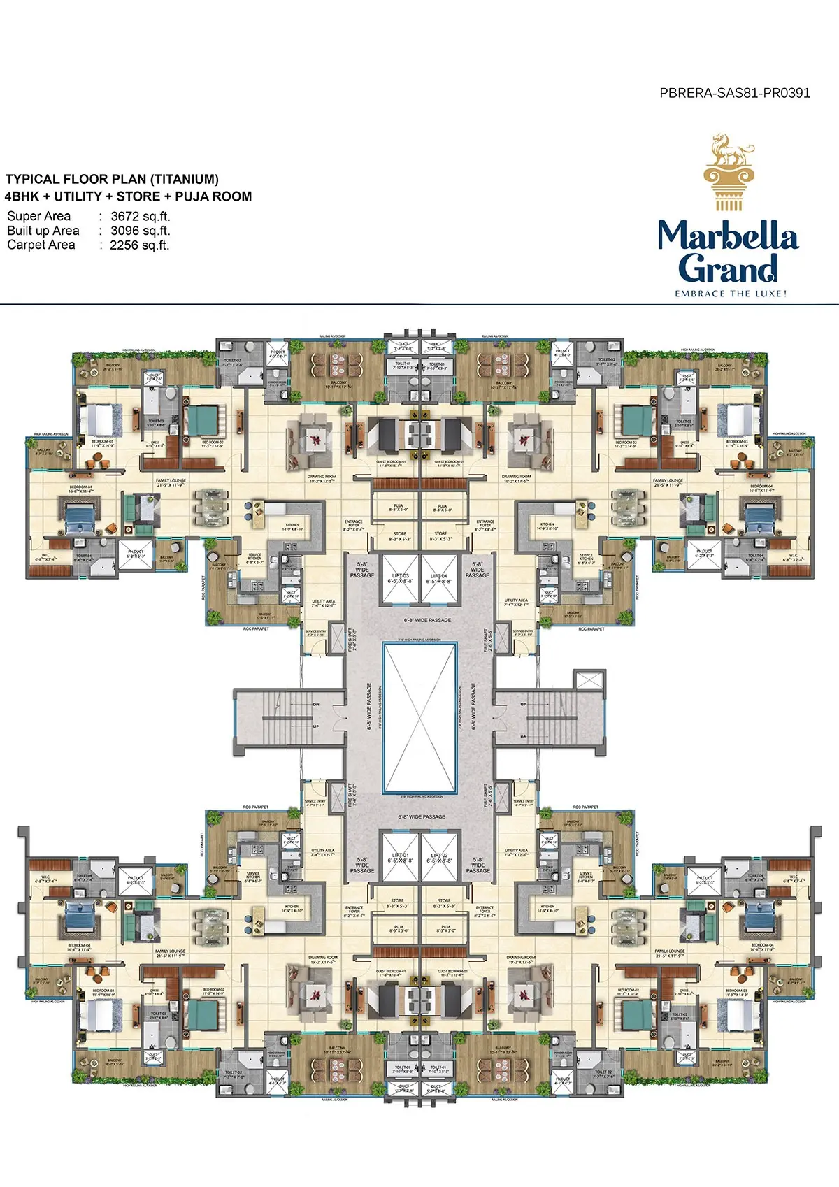 | 4 BHK + Servant | 3672 | ~2500-2800 | ~300-400 | ₹3.50 Cr - ₹4.25 Cr |