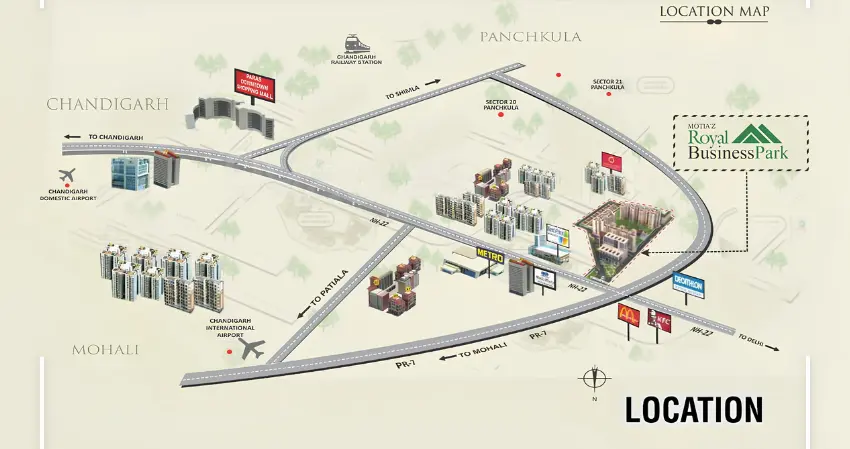 Nestled on the bustling PR-7 Airport Road in Ghazipur, Motiaz Royal Business Park stands out as a flagship among commercial projects in Zirakpur. Developed by the renowned Motia Group, this integrated business hub spans about 3 acres and caters to growing enterprises with flexible spaces like SCOs (Showroom Cum Offices), commercial plots, and modern office setups. It's perfect for those eyeing Zirakpur real estate projects, blending affordability with Grade-A facilities. The park supports a vibrant ecosystem with hotels, restaurants, and banquets, making it a go-to for real estate commercial projects in Zirakpur. Its strategic spot on the Delhi-Chandigarh Highway ensures high visibility and easy access, appealing to businesses in this thriving suburb. As part of upcoming commercial projects in Zirakpur, it promises strong returns in a market buzzing with high-rise buildings in Zirakpur and new housing projects in Zirakpur nearby.