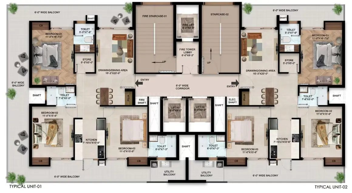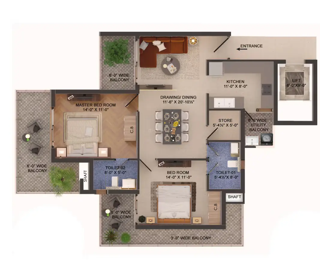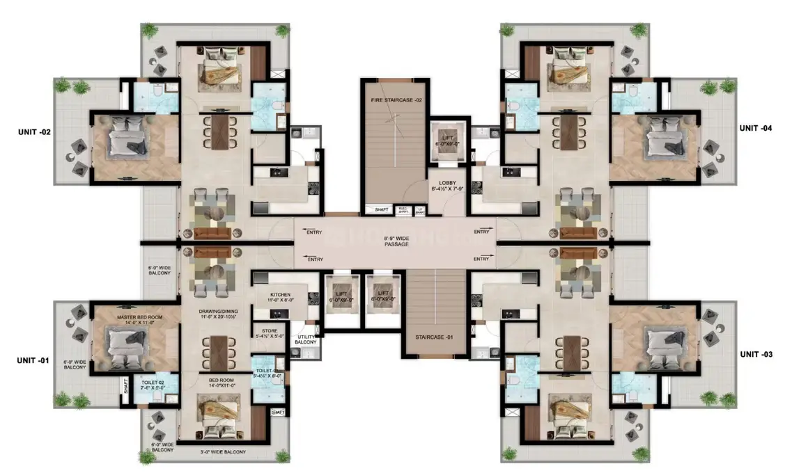 | 2 BHK | 1400-1500 | 1000-1100 | 80-90 Lac |