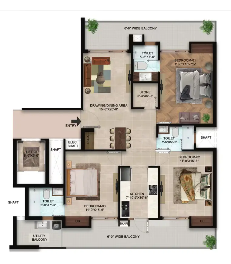| 3 BHK | 1900-2000 | 1300-1400 | 1.05-1.20 Cr |