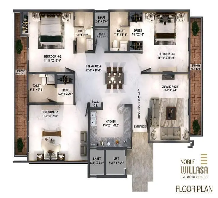 Noble Willasa incorporates thoughtful design elements that align with Vastu principles, promoting positive energy flow. The north-east facing entries and open layouts ensure harmony, much like other projects from the builder known for vastu-compliant homes. While specific details aren't extensively documented, the overall planning supports balanced living, a key draw for buyers in residential projects in Chandigarh or pre launch residential projects in Mohali.
