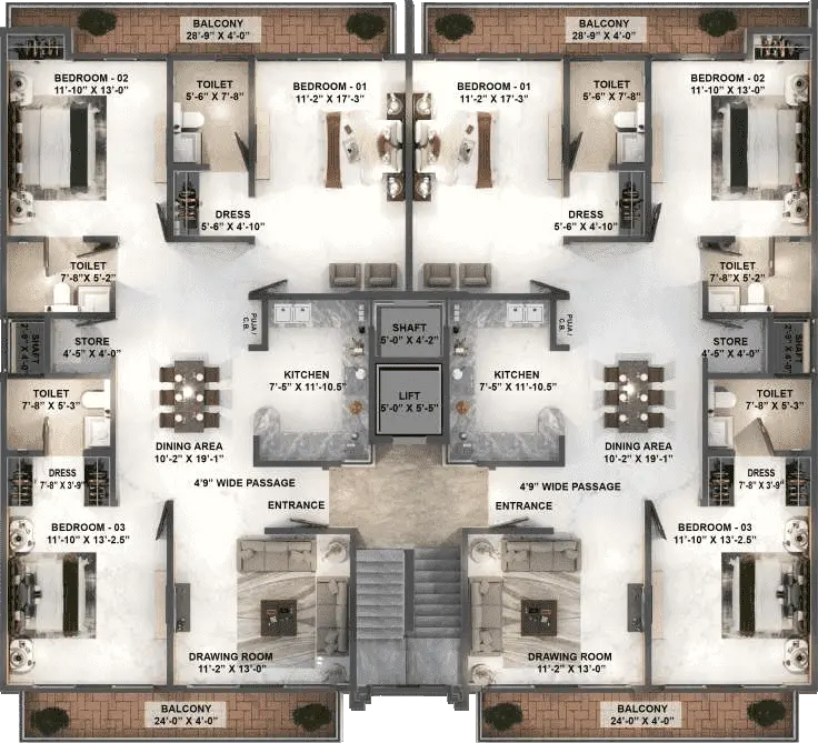 | Floor Type | Super Area (Sq. Ft.) | Carpet Area (Sq. Ft.) | Balcony Area (Sq. Ft.) | Approx. Pricing (INR) |
