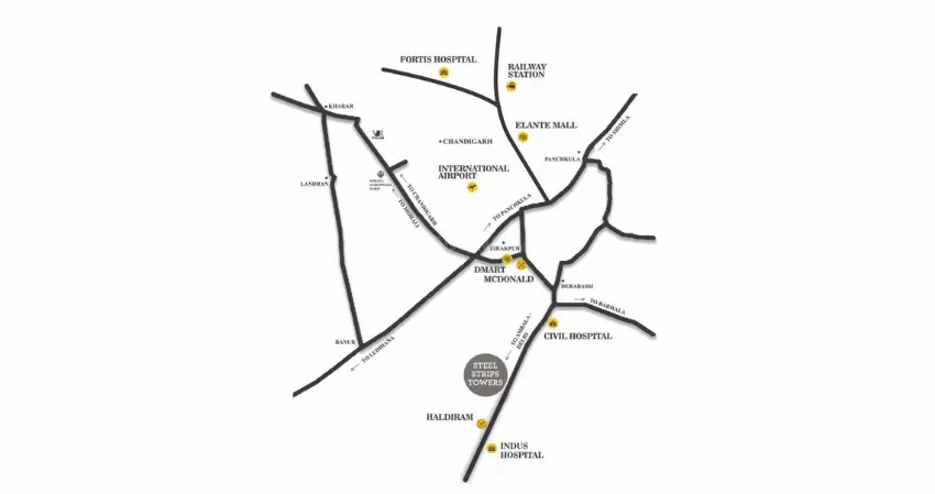 The project location also attracts buyers searching online for service apartments near me, flats near Chandigarh and high-rise apartments in Zirakpur.