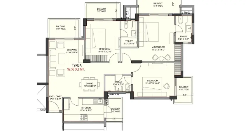 | Floor Type | Super Area (Sq. Ft.) | Carpet Area (Sq. Ft.) | Balcony Area (Sq. Ft.) | Approx. Pricing (INR) |