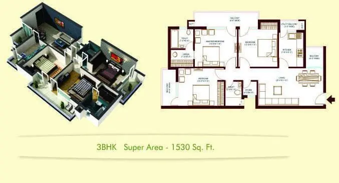 | 3 BHK | 1,530 | 43-50 Lac | Multiple baths, wooden flooring in bedrooms |