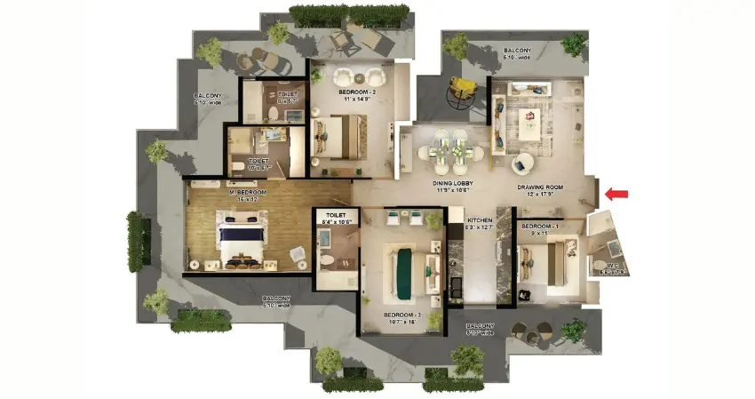 | 3BHK + Servant | 2235 | 1737 | 200 | 2.88 Cr onwards |